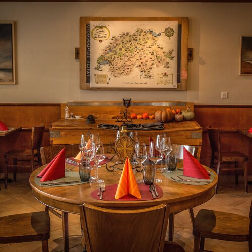 Claudia and Olivier Hiernard have combined bistro and restaurant at their charming inn. The delicious bistro fare on the blackboard is now complemented by a market-inspired "Menu du Marché", meaning flavoursome dishes are now served in both parts of the establishment. Just don't forget to leave room for dessert! On Friday and Saturday evenings, only a small selection is available.