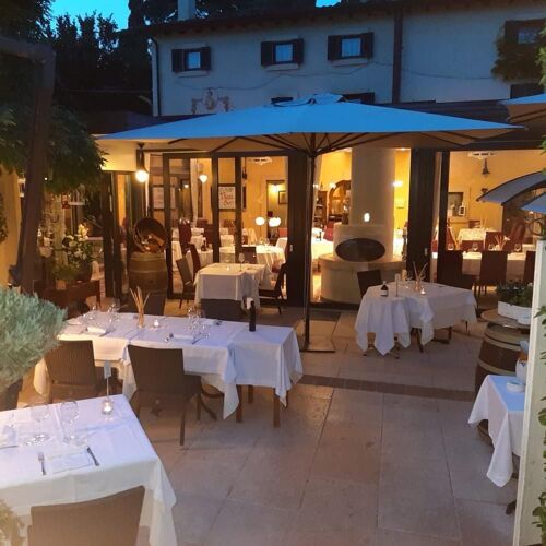 Whether you dine indoors, on the bright veranda or in the wine cellar with its barrels and wines produced by the estate, you’ll enjoy cuisine at this family-run restaurant which has gained a reputation in the region for its balance of meat and fish dishes. Excellent service and a pleasant setting in a rustic building surrounded by greenery.