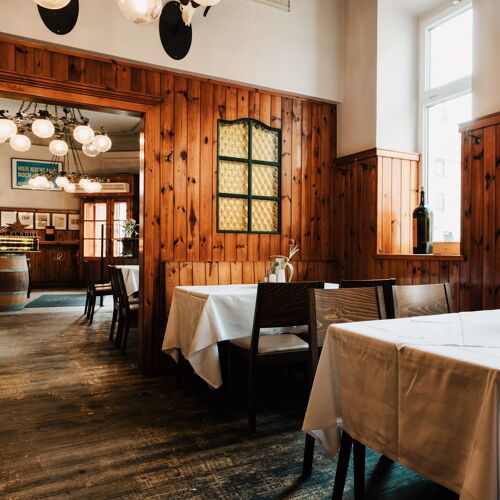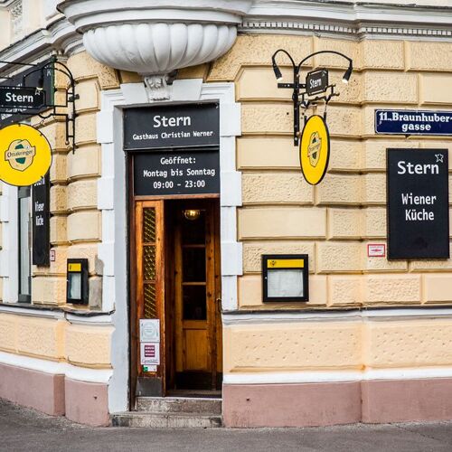 Tucked away in a residential area at a remove from the tourist trail, this restaurant is well worth the detour. In keeping with its charming traditional decor – the floorboards, wooden panelling on the walls and high ceilings evoke the atmosphere of an old-style Viennese inn – it proposes straightforward and delicious regional cuisine, which is popular with locals too. In addition to classic dishes such as Wiener schnitzel, offal and game take pride of place on the menu – the chef is a keen hunter himself. Check out the "Stern im Glas" range for delicious options to enjoy at home.