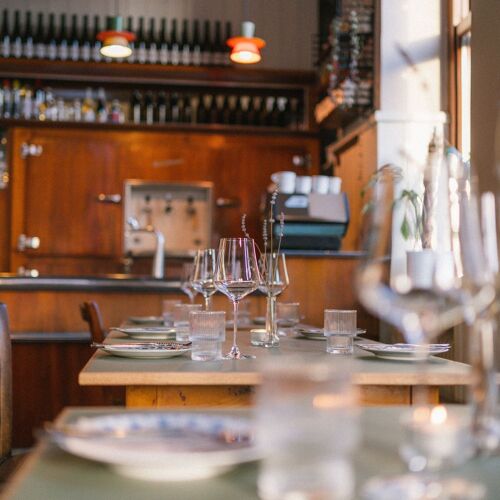 A cool concept that varies over the course of the week, attracting guests all day long. A cosy breakfast is served Thursday to Saturday; at lunchtime on Thursdays and Fridays there is an affordable dish of the day. From Wednesday to Saturday, the evening meal is all about sharing. The interesting menu offers a surprise "Chef's Choice" (only available if ordered by the whole table), or you can choose the delicious dishes yourself and share them. Incidentally, the cooking tends towards the vegetarian. The food is as unfussy as the relaxed and lively atmosphere that reigns in the restaurant, which is done out in a charming minimalist style.