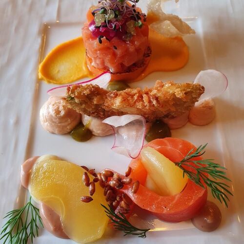 Thomas Huber (the 13th generation) and Monika Jans are dedicated to their work in the Krone, an establishment steeped in history. While she is responsible for the cordial and professional service, he takes care of things in the kitchen, preparing seasonal, traditional dishes. They will also prepare a creatively inspired set menu if you order in advance. The cheese trolley selection is fantastic! The wood-panelled interior exudes charm and contributes to the delightful atmosphere. Should you wish to stay overnight, there are attractive individually decorated guestrooms.