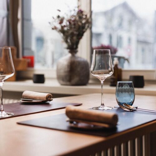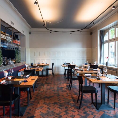 Sustainability is the name of the game here. As well as drawing on fairtrade and organic produce, the chefs source ingredients locally wherever possible. The result is bold, flavour-rich dishes replete with interesting culinary combinations. Chef Julian Marti showcases his signature style in creations such as his wonderfully creamy risotto-style spelt with smoked eel, Swiss chard and dill – fantastic! The food takes the form of a four- to seven-course set menu – a vegan version is available by prior arrangement. In keeping with the modern cuisine, the dining space of this small restaurant on a corner plot has an appealingly minimalist design, for an urban, international feel. The remarkably friendly and relaxed atmosphere comes courtesy of charming and experienced maître d' and sommelier Sandra Brack. Dishes and ingredients are clearly explained, and the wine recommendations are thoughtfully selected – a good selection of Swiss, German and French wines. Opt for the wine pairings or an alcohol-free alternative to accompany your food.