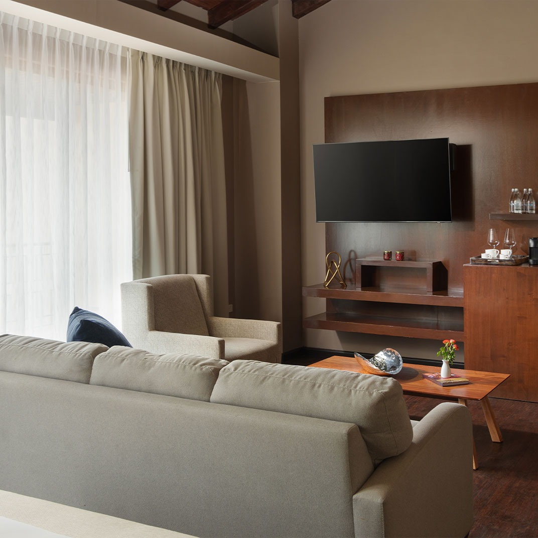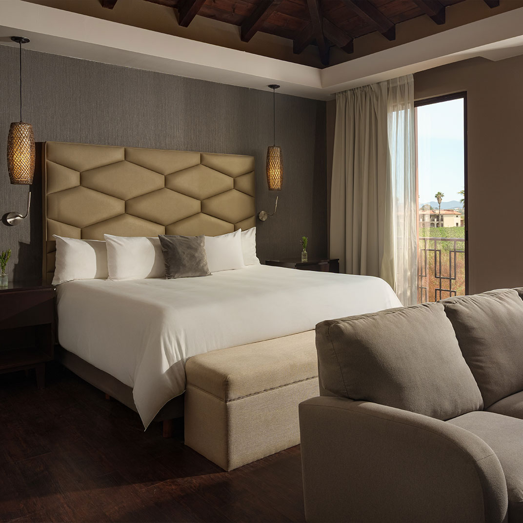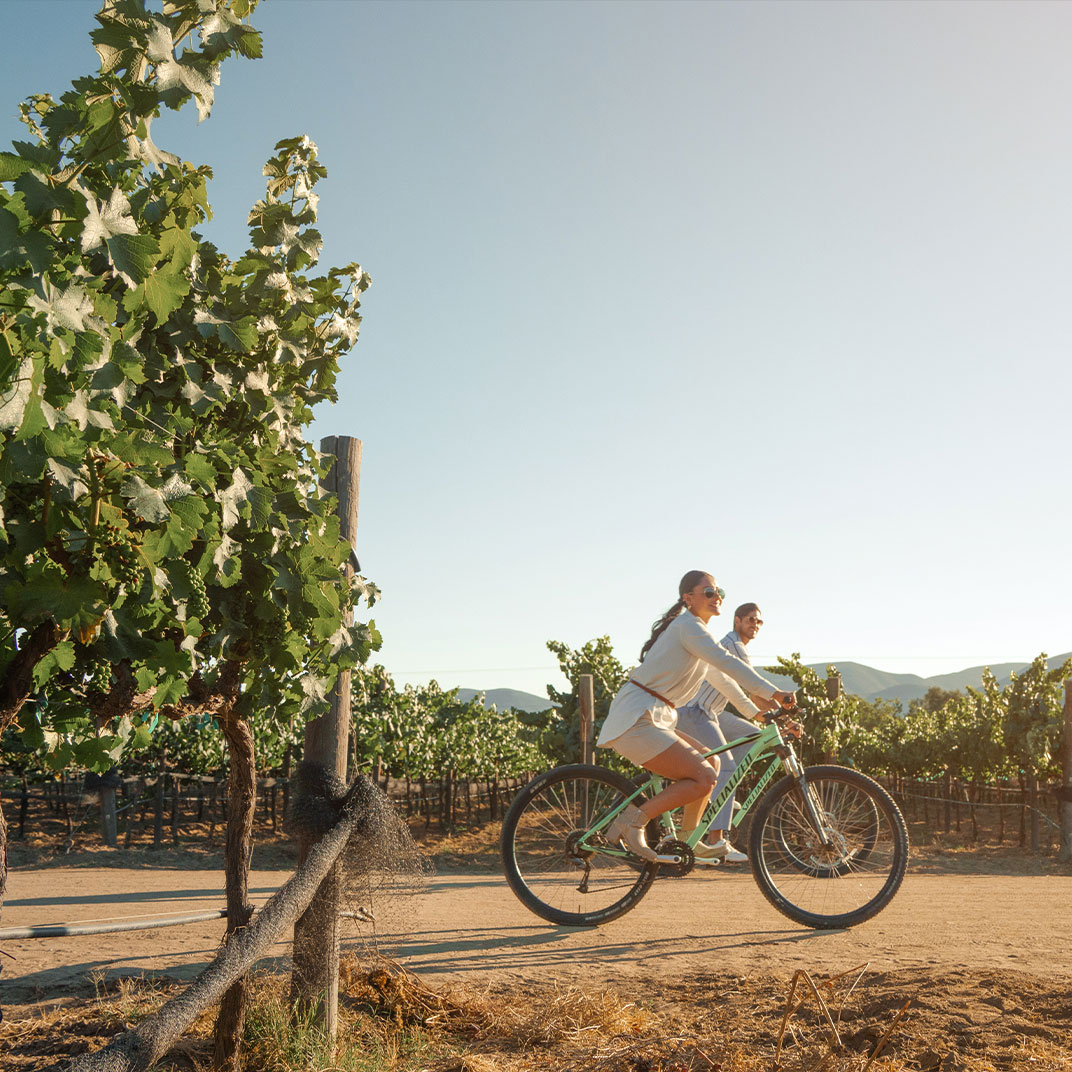 Ground-level suites have king-sized beds, fully equipped kitchens, spacious bathrooms with Jacuzzis, and sliding glass doors that open onto private patios with firepits, while those on upper levels feature high vaulted ceilings and elevated views over the surrounding scenery. Most feature wine cellars or fridges to store a few bottles after a day out exploring wine country, and the hotel’s fleet of bicycles and golf carts makes it easy to join on-site tastings and tours.