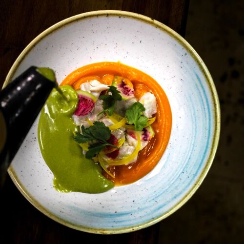 A quiet street in a residential area, a low-key façade, a contemporary bistro and a dinky, buzzy interior with tightly packed tables: this is the fine dining lair of Maximilien Kuzniar. Ceviche of seabass, mashed sweet potato and leche de tigre sauce; egg parfait, purée of carrots and ginger: the tasting menu stars a festival of forthright flavours devised from wholesome seasonal ingredients. The lunch set menus are excellent value for money, while the evening dining options are more creative and ambitious.