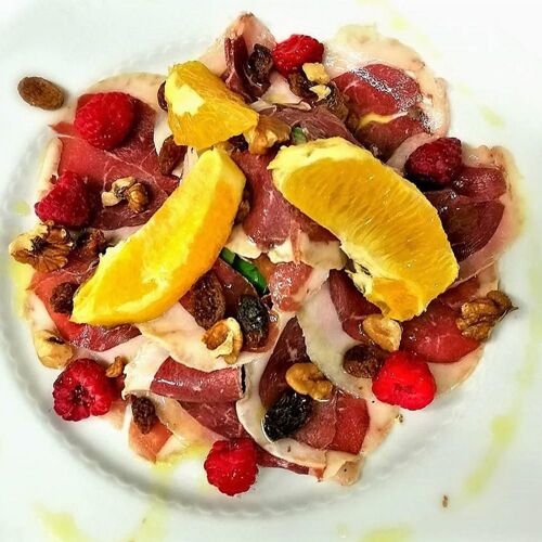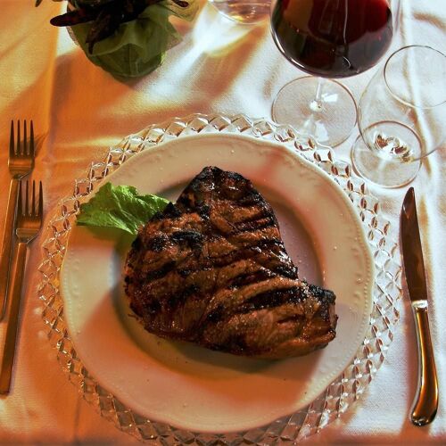 The 14th-century home of the castle gamekeeper has been transformed into a showcase of regional products with a terrace overlooking the hills and, from the rooms, glimpses of the surrounding countryside. Chef Chiara's cooking is easy to read: Tuscan and local, with an emphasis on seasonal produce from the garden and nearby farmers. The triptych of hams is already a good reason to sit at the table, delicate and firm at the same time, with perfect seasoning! Among the starters, indulge in an artichoke flan; among the main courses, the classic Florentine steak or pigeon, served whole and flavoured with vin santo.