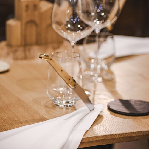 Located at the foot of the Benedictine Abbaye d'Ambronay, this contemporary place has been designed down to the very last detail by modern-minded owner Ivan Lavaux, who has put time and thought into the choice of materials and colours (including a specially created toile de Jouy!). He moves between the restaurant floor and the kitchen, showcasing the many selected wines from his cellar, as well as the premium ingredients he loves (asparagus, sea bass, lobster etc). Indulge in one of his tempting set menus, served at lunch and dinner.