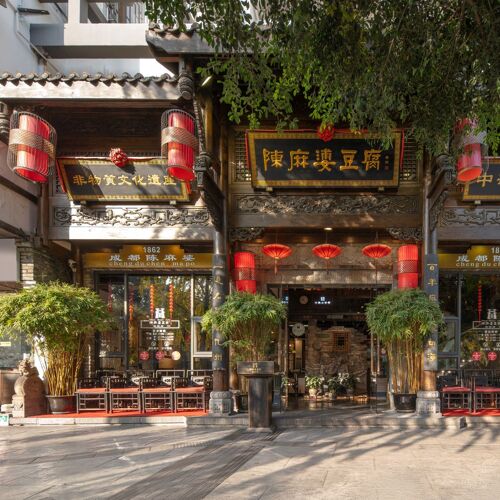 Mapo tofu is a world-famous Sichuanese classic dating back to the Qing Dynasty. Word has it that this century-old shop is the true original source of this numbing, spicy dish, invented by Lady Chen. Silky tofu, ground beef and spices are cooked in a stone pot that stays hot for a long time, perfect with a bowl of steamed rice. Zhong dumplings and lotus leaf-wrapped steamed pork in spiced rice flour are also worth trying.