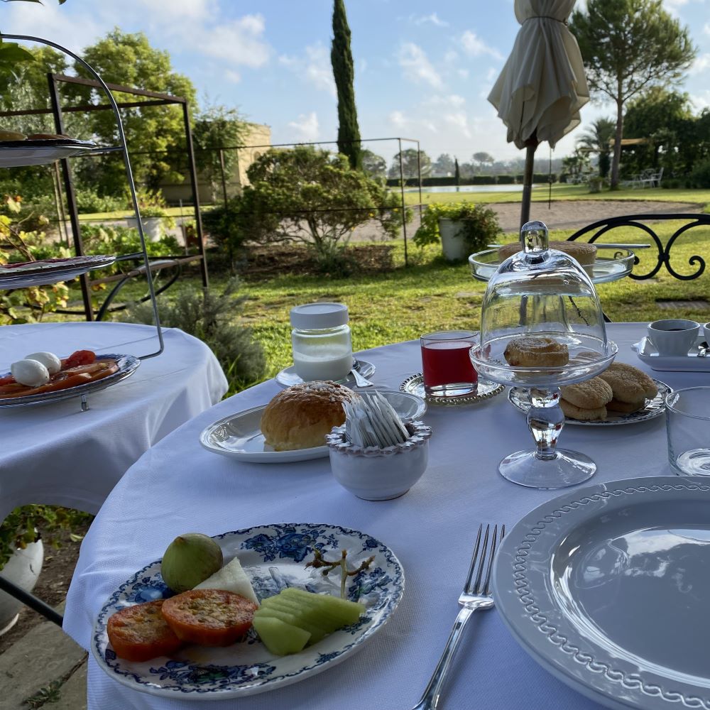 Breakfast is served in the garden alongside an orange grove, with a light lunch available here or by the poolside. If you’re on site in the afternoon, an aperitivo is a must, and if you reserve in the morning there’ll be a table waiting for you at dinner as well.