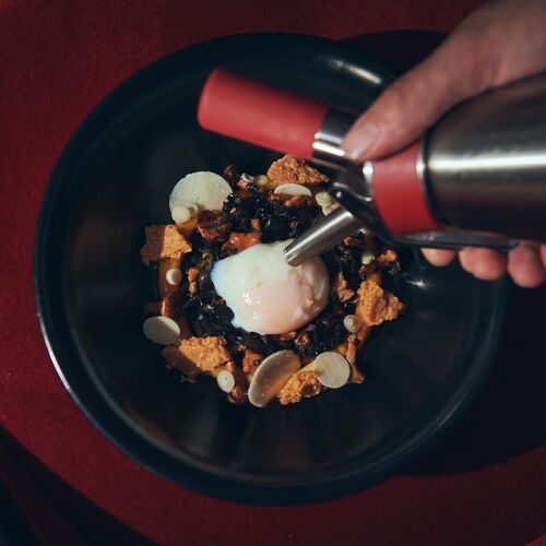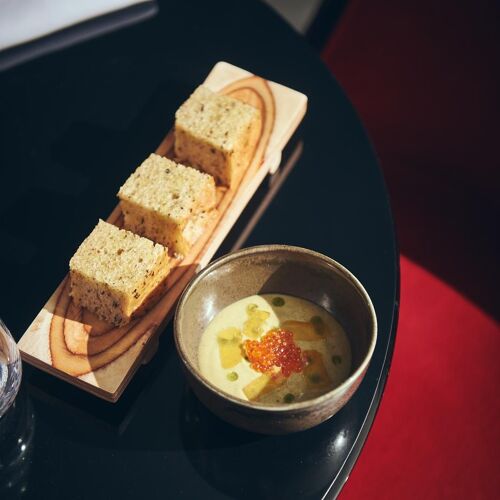 A pleasant interior done out in the style of a chic brasserie (red and black chairs, black lacquer tables, exposed beams and stonework). Diners flock here for the serious bistronomy cuisine infused with French tradition… just like at L'Escudella, the other restaurant born of the partnership between chef Rémi Poulain and Anthony Rivière. Dishes include pâté en croûte (a cult favourite); pollack, fennel, peas and kumquat; strawberry-basil vacherin, pistachio and lime crisp. Well-paced service.