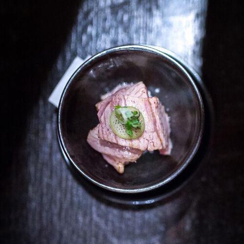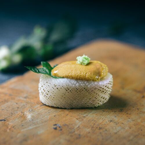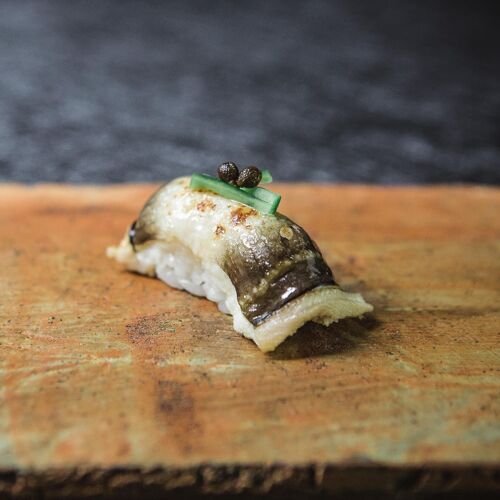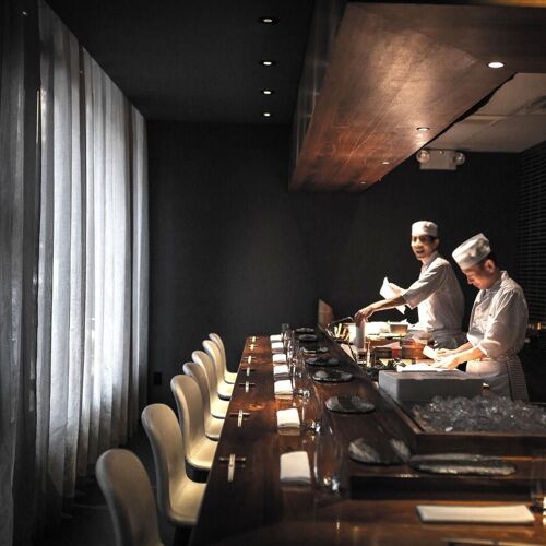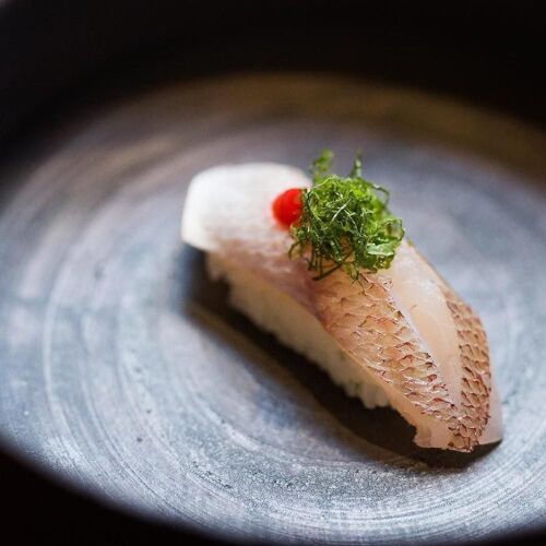 Kosaka offers a stellar omakase in an elegant setting. The dining room flaunts a classic Japanese sensibility—outfitted with a counter for 12, a few tables, soft piano music, as well as an attentive staff that enhance the overall experience. Some counters like to keep everyone in sync, but Chef Masatomo Soma embraces flexibility and heads this counter with confidence and skill. Technique is impressive, and the fish is minimally embellished, sometimes bearing a subtle surprise – say a shiso leaf hidden under a slice of rosy seabass or a dab of yuzu koshō under a piece of kinmedai from Chiba.
