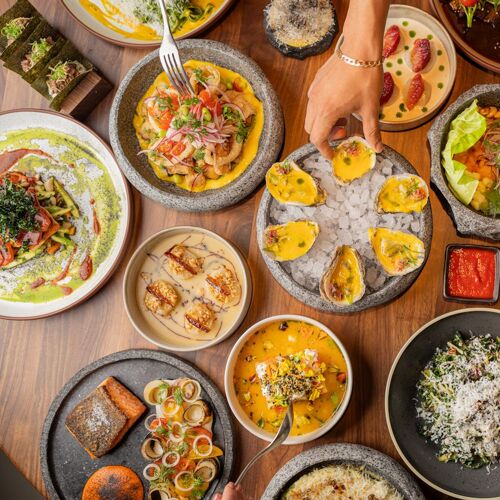 Chef Chávez’s ceviche is reason alone to pull up a chair, offering the traditional Peruvian citrus-marinated version alongside Nikkei ceviche, a blend of Japanese and Peruvian flavors and ingredients. Another dish to order is the pulpo al olivo, with tender, bouncy octopus dressed with purple-hued, olive-forward tiger's milk. Pieces of avocado and fried capers further enhance this delicious dish.