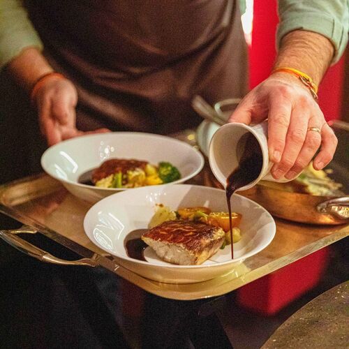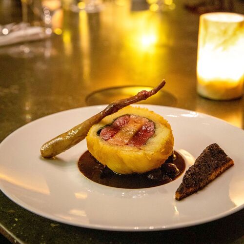 On the Quai de Paludate, one wing of Château Descas houses this contemporary restaurant with polished concrete floors and walls with arches that are characteristic of Bordeaux. In an ambience fostered by dim lighting and a soundtrack of electronic music, the dishes of chef Christophe Girardot (previously at Paradoxe in Cenon) come together beautifully, a case in point being his melt-in-the-mouth veal chuck, herb gnocchi and full-bodied meat jus. Complement your food with a cocktail or choose from the extensive selection of fine wines.