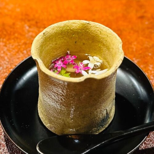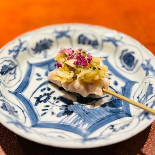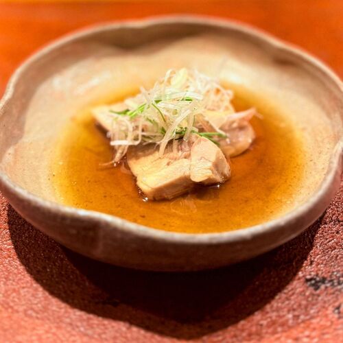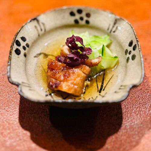 The ‘Japanese Jidori’ on the coasters means chicken breeds native to Japan. The chef takes pride in using only such chicken, never mixing them with foreign breeds. The concept here is to eat the entire bird. Rare cuts of chicken are shared between two diners, which is why reservations are only accepted for groups of two or more. To ensure that guests savour the richness of the chicken to the full, there are no dipping sauces. Respect for food producers and passion for yakitori pervade every aspect of Torisen.