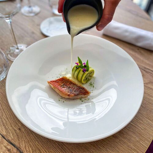 Good-humoured staff, friendly service, a convivial atmosphere, modern cuisine with a touch of inventiveness (eg fish sausage or a seaweed/mustard sorbet as part of the mackerel starter; a lime/pea sorbet alongside a chocolate dessert), quality local produce and a few ingredients gathered wild (mustard seeds): this is the winning formula behind this small restaurant a stone's throw from Le Remblai promenade. In case you were wondering, the name Lacertus means "mackerel" in Latin.