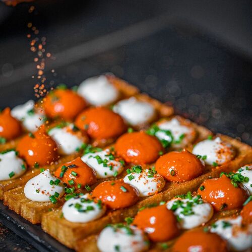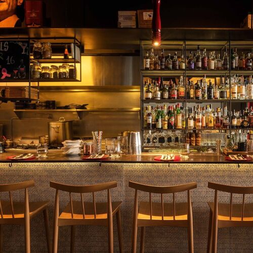 You can’t miss the huge papier mâché caricatures of the owner and chef hanging from the ceiling. The food is equally fun as the chef melds Catalonian flavours with modern techniques to create original and exciting tapas-style dishes such as smoked Cantabrian anchovies on charcoal brioche, and patatas bravas FOC style. Always busy and buzzing with a cheerful vibe. Ask for a seat at the counter to enjoy the experience to the full.