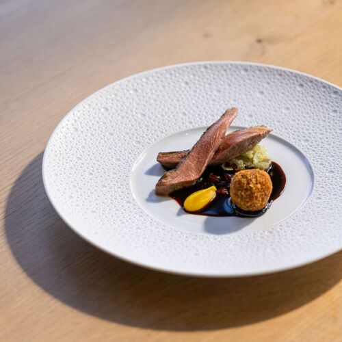 Head for the Flesborg Fjord, and at the water’s edge you’ll find this early-20th-century villa boasting a cosy bar, parquet floors and light wood furnishings. After almost a decade working at Henne Kirkeby Kro, British-born Paul Proffitt set upon his own in this most idyllic spot on the opposite side of south Jutland; book a space in the glass-cubed ‘Doris’ to watch him up close. Modern cuisine marries local produce and a little playful childhood nostalgia, in dishes such as dripping served with a buttery brioche, aged dairy cow tartare or a surf 'n' turf of sirloin with oyster cream.