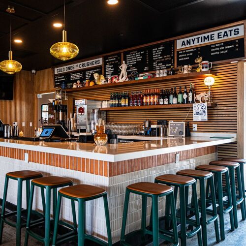 What started as a food truck in 2017 is now be enjoyed in a spacious location in Garrison Park. The moniker refers to the duo of married couples who run this enticing operation where the setting gives off midcentury vibes with its glazed brick exterior and peak-roofed dining area.