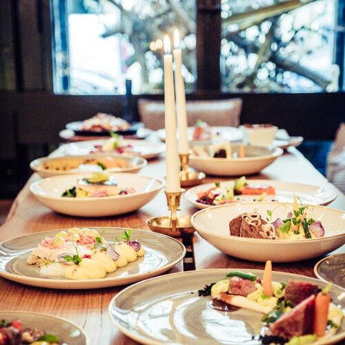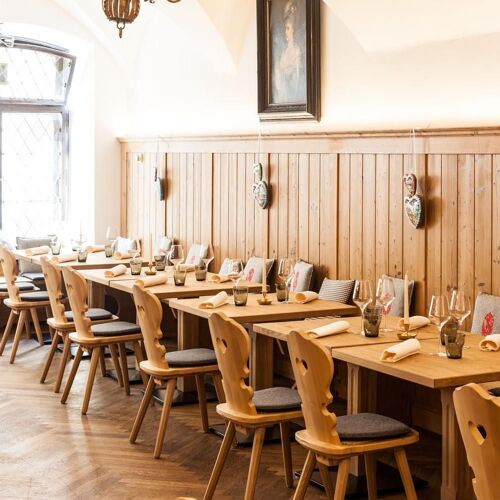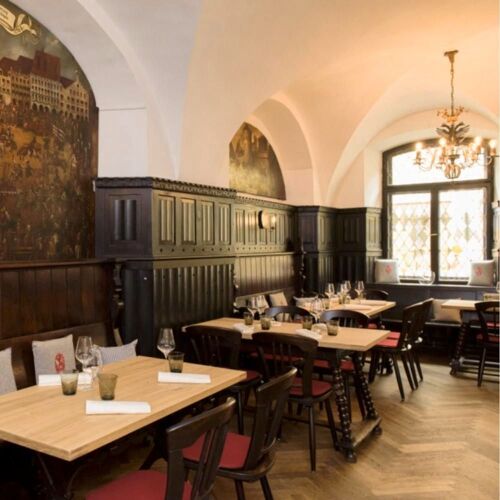 With its cross-vaulted ceiling, herringbone parquet and wood panelling, this old restaurant has lost nothing of its traditional charm. The food is just what you would expect from an upmarket Munich inn – try the flaky pastry crust chicken fricassee pie. The Kaiserschmarrn for two is also a firm favourite! Nice wine list with a good selection of champagnes.