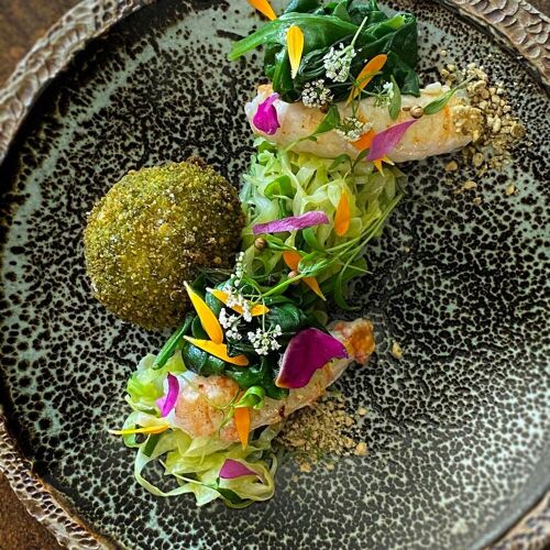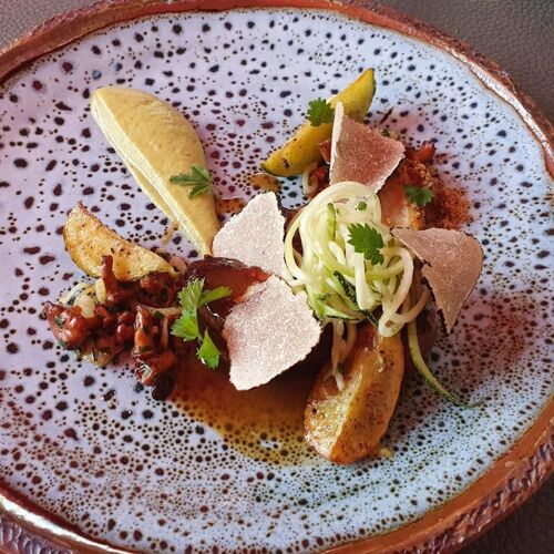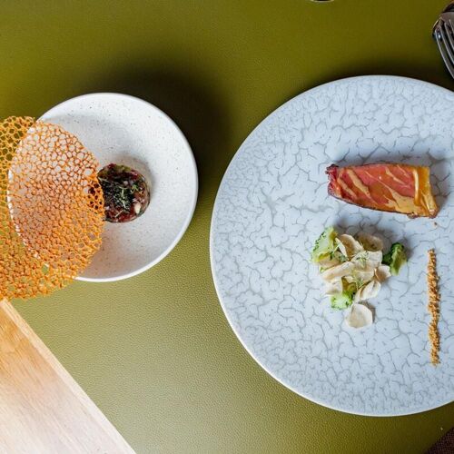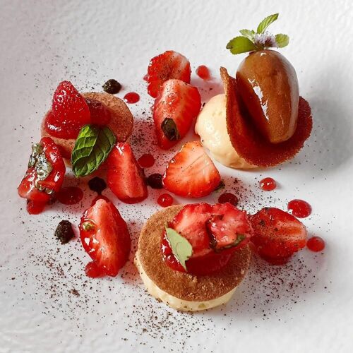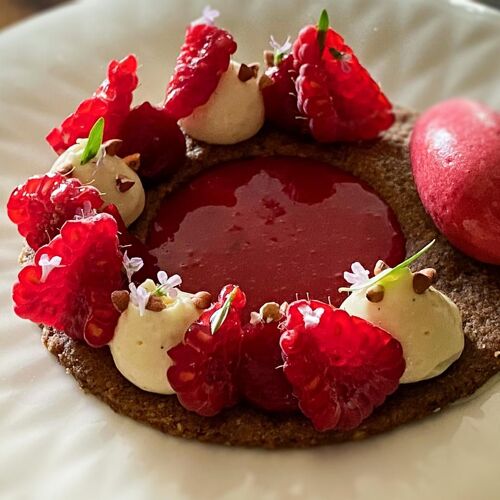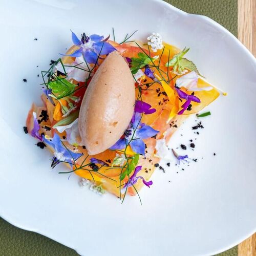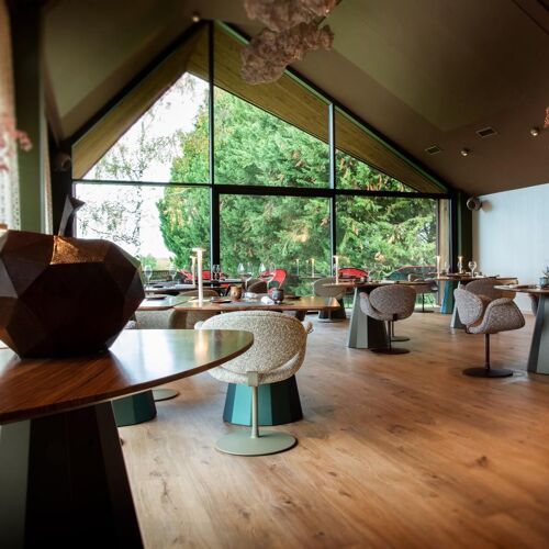 This contemporary restaurant surrounded by orchards has a bright, welcoming, clean-lined dining area that looks onto the surrounding countryside. Full of verve and creativity, Bastien Gillet's colourful, zesty cuisine is as subtle as it is finely judged, both in terms of the aromas and the textures; his dishes, laden with top-notch farm produce from the region, are rife with flavours. And the detail to seal the deal: the dishes are served in delightful crockery that is handmade locally. The menu is liable to change daily, in accordance with the chef's inspiration. Suffice to say, this restaurant that pushes the boundaries with delicious fare has plenty to recommend it, so why not take a bite?