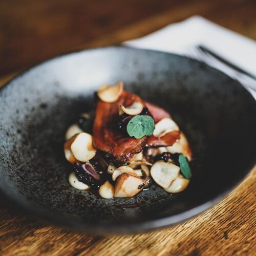 You couldn’t meet a friendlier family than the parents, daughter and son-in-law who run this rustic roadside pub. With its cosy, shabby-chic style, it's an undeniably charming and characterful place where everyone feels welcome. The bar area is filled with locals and their dogs enjoying a drink, while diners are spread across several dining rooms in which they enjoy the straightforward, satisfying cooking that derives plenty of flavour from the quality local produce.
