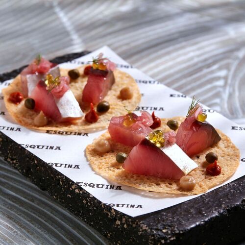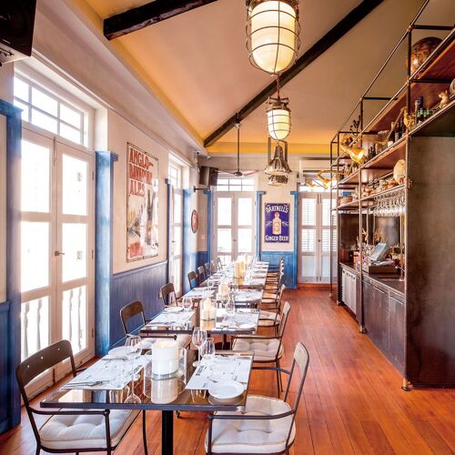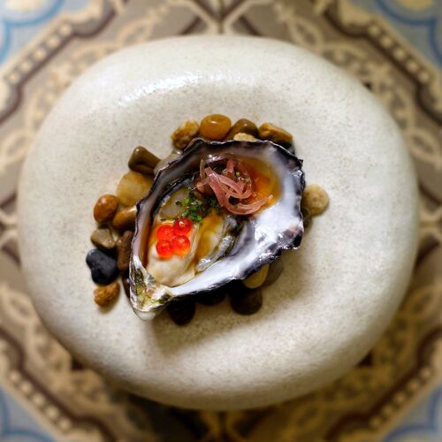 餐厅占地两层,由酒吧和主餐室组成,建议选择位于底层、开放式厨房前的吧台位置,近距离观看主厨带领其团队,炮制色彩缤纷又充满创意的美食。菜单分为小吃、土壤、海洋和陆地等栏目,推荐搭配乌鱼子大蒜奶油的鳀鱼脆面包条。八爪鱼和烤乳猪为招牌菜,亦值得一试。如难以选择,不妨点选套餐。
