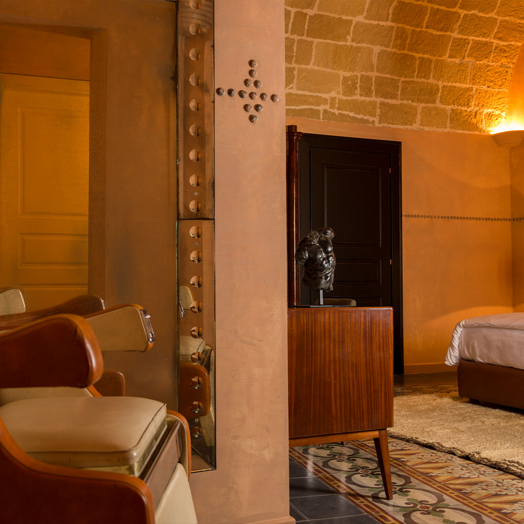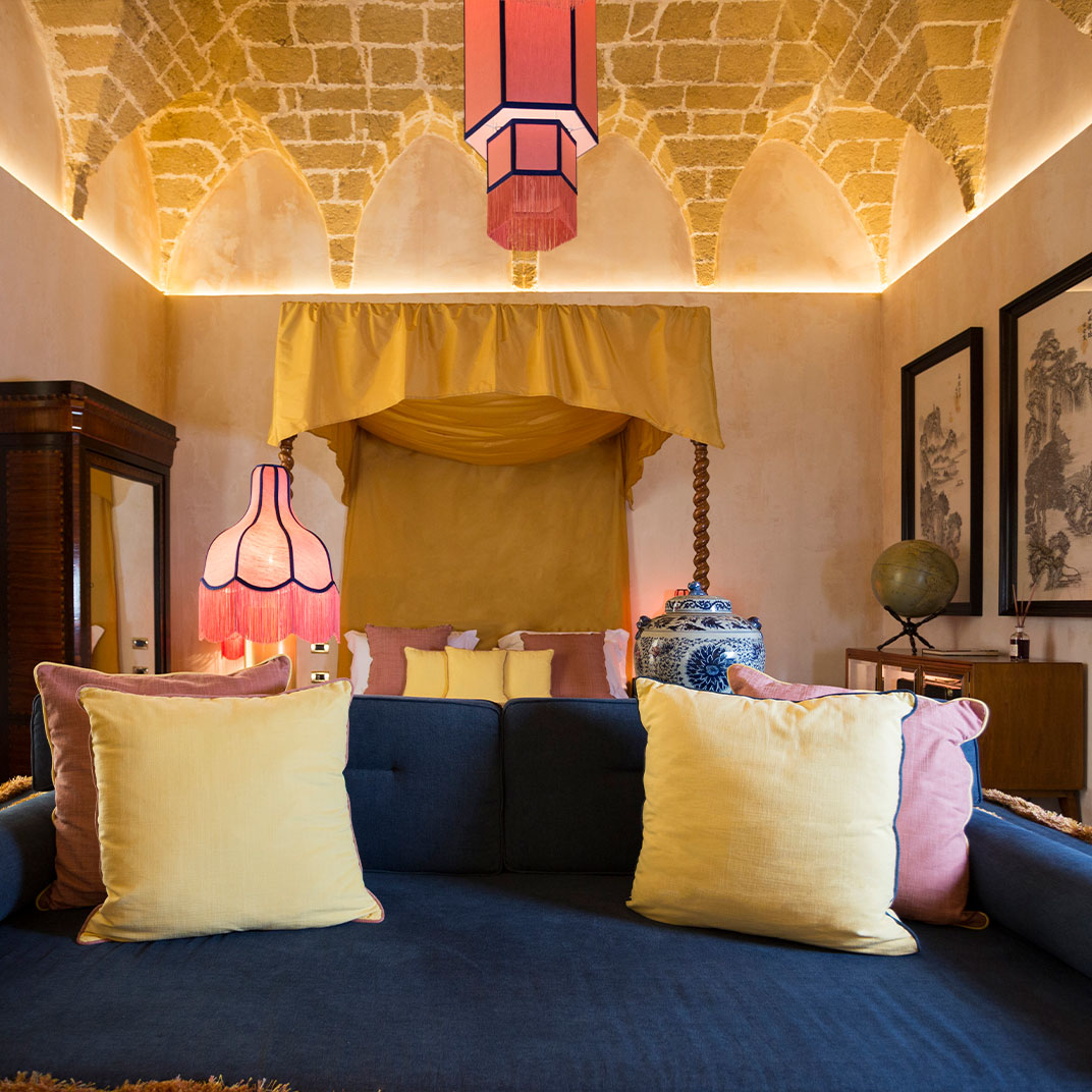 Those with a keen eye for geography will have noticed that there’s more than one Gallipoli on the Mediterranean — it’s derived from the Greek for “beautiful city,” which is a recurring sentiment in these parts. This one, in Puglia, is set on a small island connected to the mainland by a walkable bridge. And within a 17th-century house in the warren-like town center is Palazzo Presta, a surprisingly colorful and contemporary boutique hotel that’s packed with personality, thanks to its talented designers and the art and objects collected by its globetrotting proprietors.