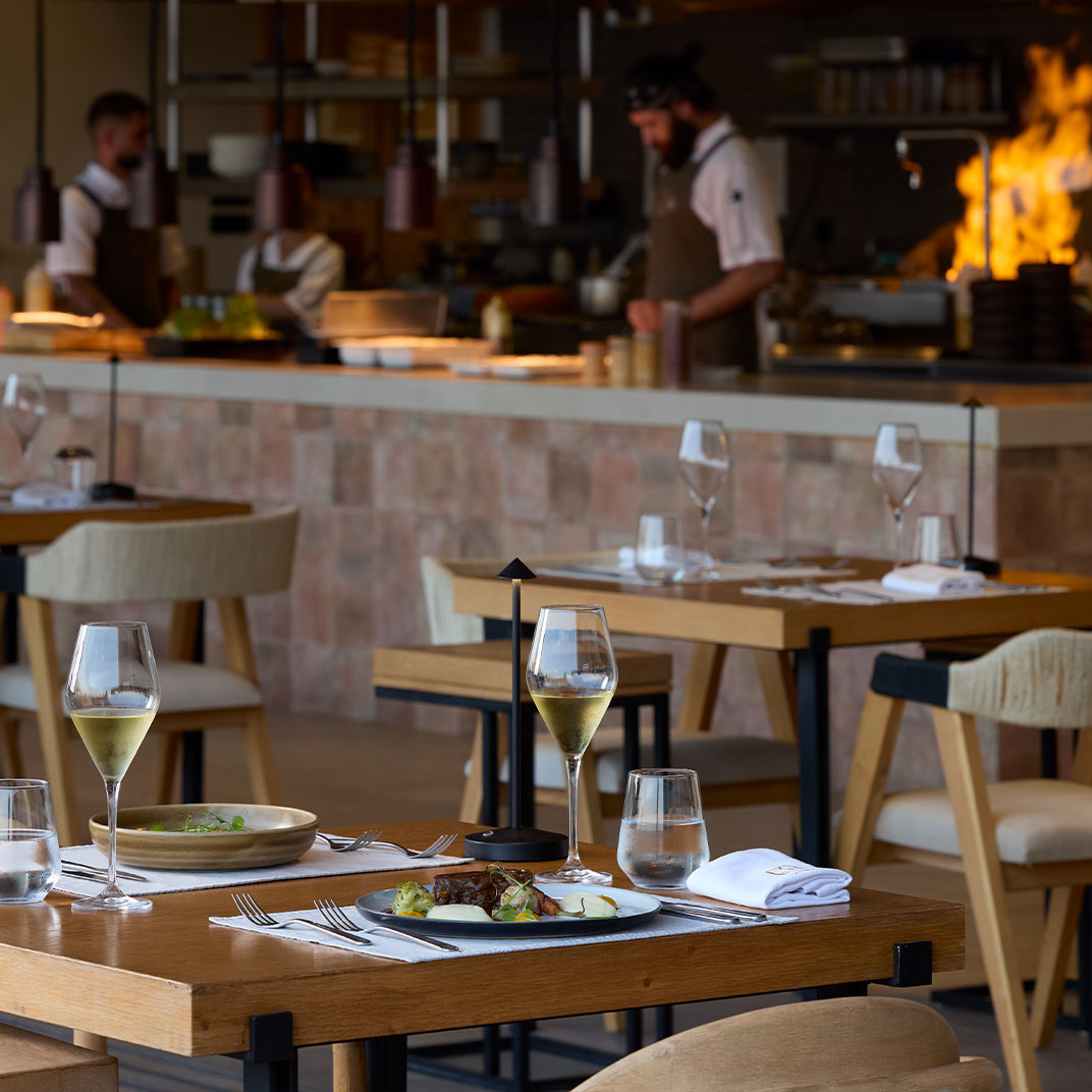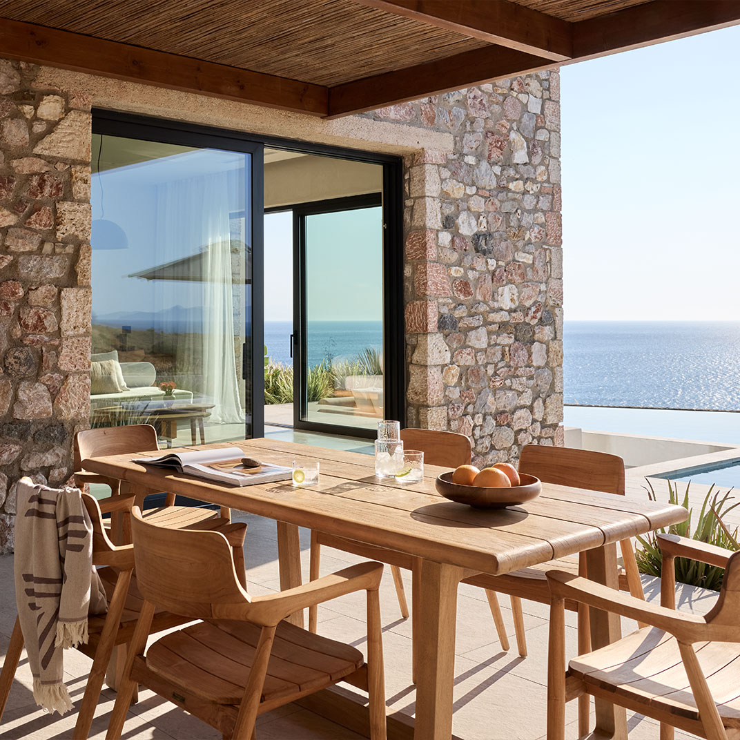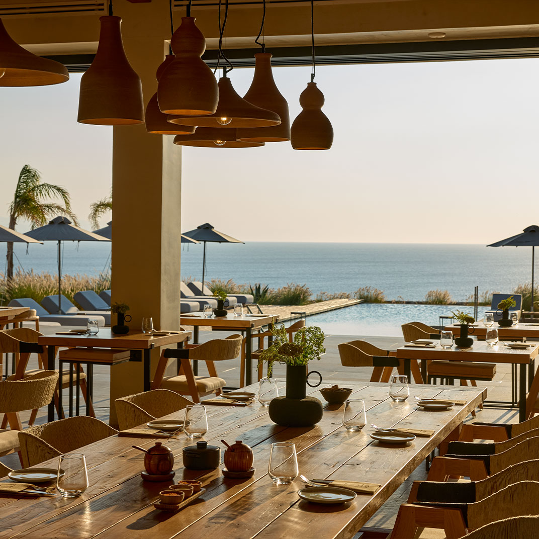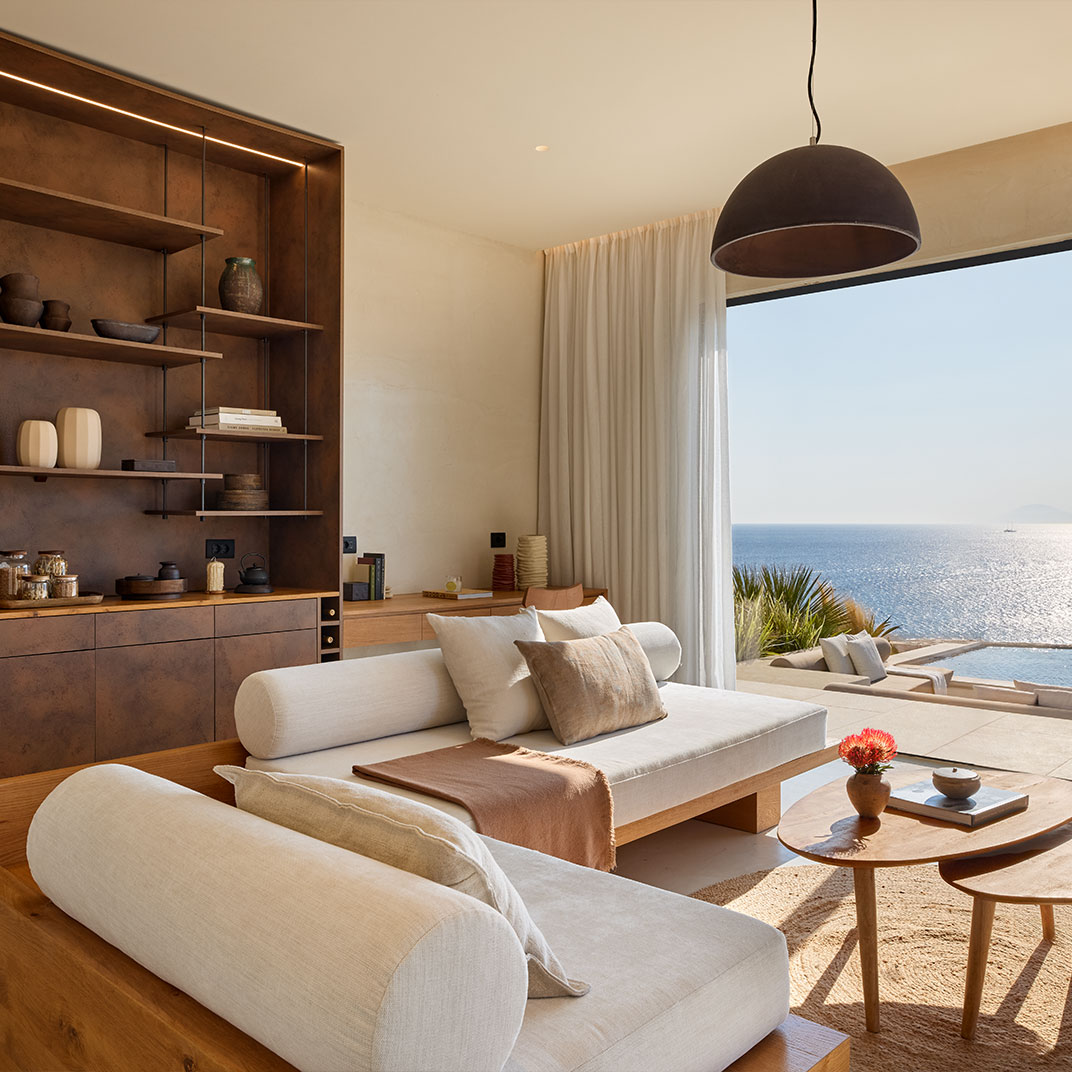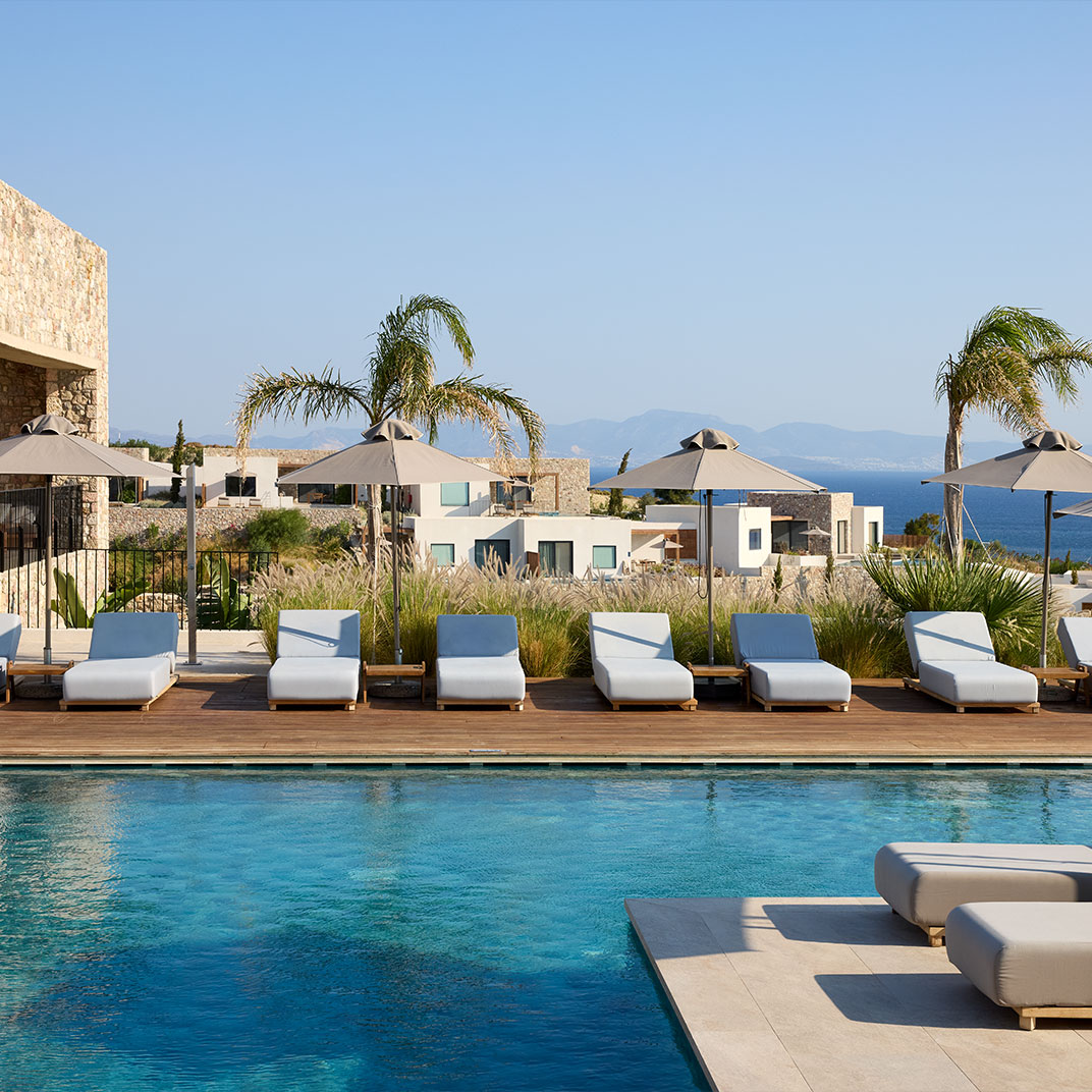 Spa time is taken seriously at Koia All Suite Wellbeing Resort, where the wellness concept is rooted in the Hippocratic philosophy. Pared back rooms in shades of white and wood come with instantly calming Aegean Sea views, and in most cases a private pool. YDΩR SPA is of course the highlight, this is a wellbeing resort after all, with treatments based around the healing properties of water and herbs. There’s an indoor pool with more sea views, a steam room, a Hippocratic Tea Bar, and relaxing massages using the hotel’s own natural botanical oils. Restaurant Thyme complements the experience with nutritional dishes rooted in traditional Grecian cuisine, and cocktail bar Elixir and the Pool Bar & Restaurant serve a mix of herbal alcohol-free drinks and local wines.
