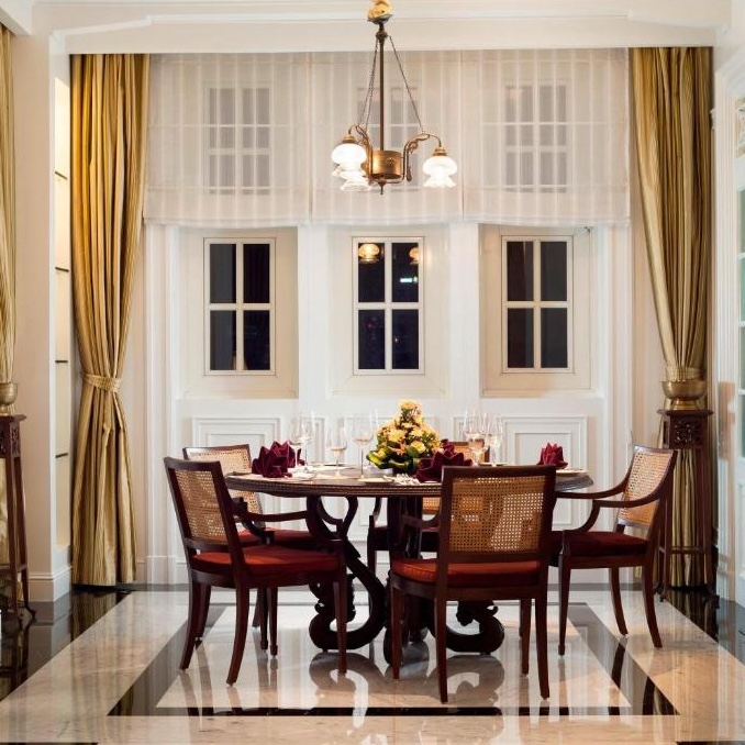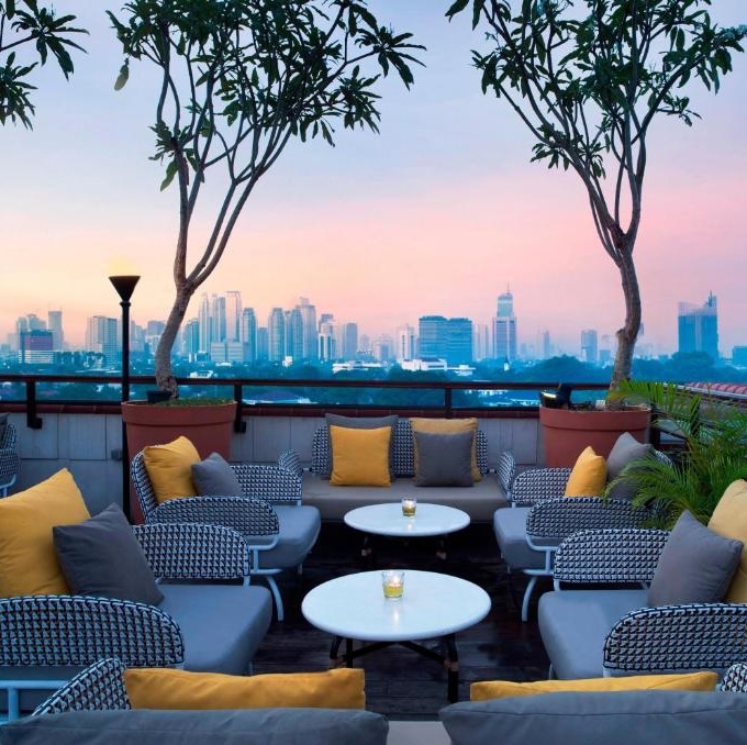 回到氛围优雅醉人的底层,酒店的主要餐厅L’Avenue供应选用传统印尼原材料烹制的法式料理。不远处露天中庭更为休闲随意的Courtyard Café摆放着白色柳编家具和阳伞,在此可享用美味轻食及鸡尾酒。入夜之后,深色原木基调Wine & Cingar Room的真皮沙发,则是小酌放松的绝佳去处——不妨学当年荷兰人点一杯琴酒(jenever)。不过品尝鸡尾酒切记别忘了酒店的另一大亮点:屋顶的全景环绕酒吧La Vue,紧挨无边泳池。傍晚步入酒吧欣赏落日余晖照拂下的整座城市,粉刷的白木装饰和碧绿海玻璃带来轻松自如的独特美感——别被荷兰风情弄糊涂了,你依然身在爪哇海岸。