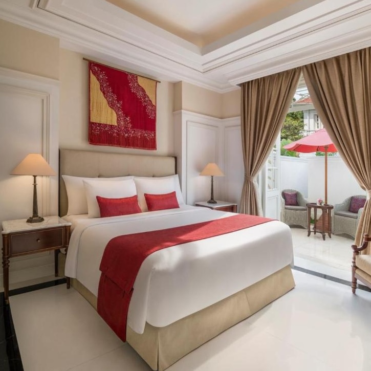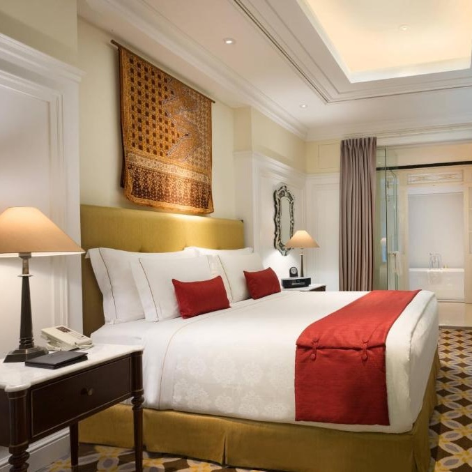 你也许在走近酒店时便能猜出该建筑的原有功能:位于富裕繁华的铭登区(Menteng)中心地带(恰巧也是美国总统奥巴马幼年成长和读小学时生活的街区)。酒店外观庄重巍峨,内部大堂奢侈华美,如宫殿般堂皇富丽,金库般高挑的镶板天花、雪白锃亮的Carrera大理石地板,优雅繁复的垂坠窗幔,华贵玻璃隔板和美轮美奂的吊灯,让人心折。楼上客房和套房则稍微收敛古典奢华气息,取而代之的是含蓄低调、简约大方的迷人设计。Espresso咖啡机、高床软枕和40寸平板电视等星级酒店元素当然必不可少。套房则呈献爱马仕沐浴用品、Bose电器底座和私人阳台等顶级礼遇,具体视房型而定。