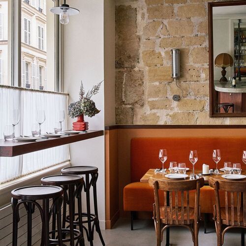On the bustling Place Gustave-Toudouze, this Parisian bistro evokes a chic 1970s flat, with waxed concrete, orange velvet and contemporary artwork in a warm, trendy atmosphere. In the evening, candles flicker behind linen curtains, piquing the curiosity of passers-by. The compact menu is brimming with well-balanced ideas: seared line-caught mackerel with a punchy salsa verde; a warming shallot, bone marrow and Comté tartlet. The must-try natural wines are carefully sourced, and the service is laid-back and efficient. The place is often packed.