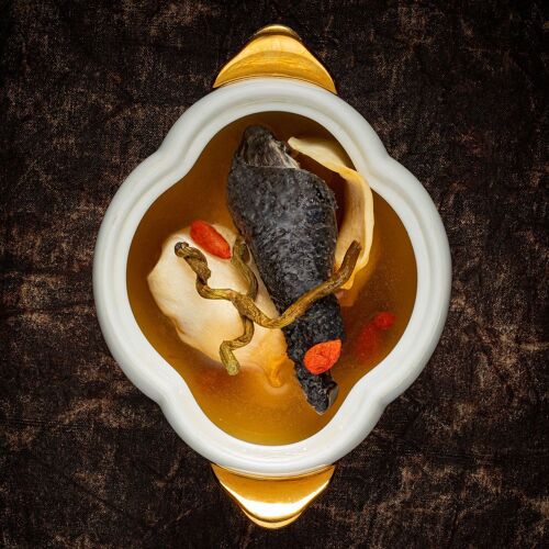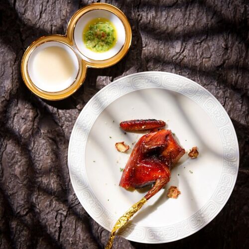 As well as the main menu, the dining concept by chef Tam Kwok-Fung features two sets – one classic, one seasonal. New à la carte items pop up every month to showcase seasonal ingredients. The traditional appetiser ge zha, or deep-fried egg custard, comes in a hairy crab version in autumn - the velvety custard bursting with crabmeat flavour is enrobed in a crispy crust. Roast spareribs in black bean honey sauce are smoky and aromatic.