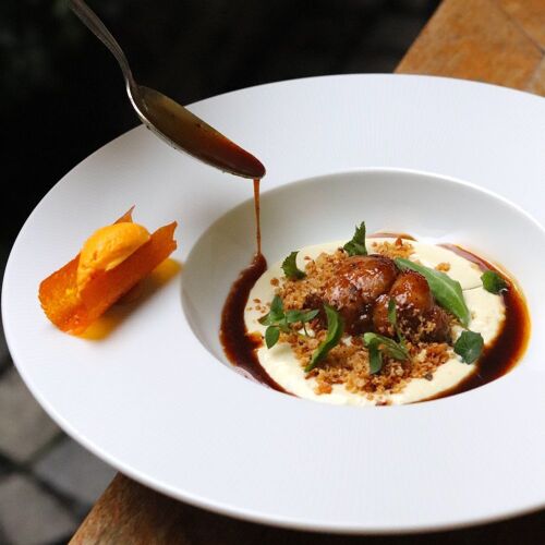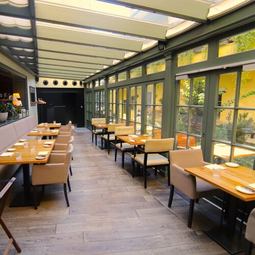 Access to this elegant modern restaurant is via a cobbled courtyard. Inside, a warm colour scheme creates a pleasant atmosphere, and the front area features a light and airy winter garden. The classic cuisine with a Mediterranean touch is made with ingredients of the highest quality; example dishes include lobster soup or sea bass with white wine sauce. There are also different grilled dishes every day. Plus they have good wine recommendations up their sleeve.