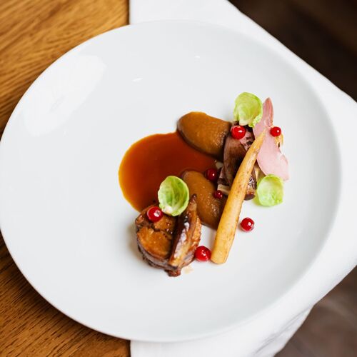 In this restaurant with the flair of an Italian country house and decorative shelves full of cookbooks, small tables make for a friendly, elegant ambience. The modern european cuisine is served à la carte or as a set menu. The front-of-house team provides attentive, competent service, and there is a good selection of wines to choose from.