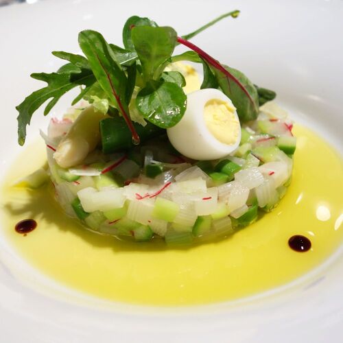 In his charming little restaurant, Jan Kracík serves food inspired by classic French cuisine and the culinary experiences he made during his years of travelling. Dishes such as veal sweetbreads with morels in sauce à la crème, or fillet of seabass with shallots and white wine sauce are available à la carte and as part of the "Menu Pot-au-Feu" or "Menu of the Season" (with options for each course). There are also a few daily specials. The welcoming atmosphere is enhanced by the friendly and laid-back, yet dedicated and knowledgeable front-of-house team, as well as a cosy modern decor with wine racks and art as decorative details.