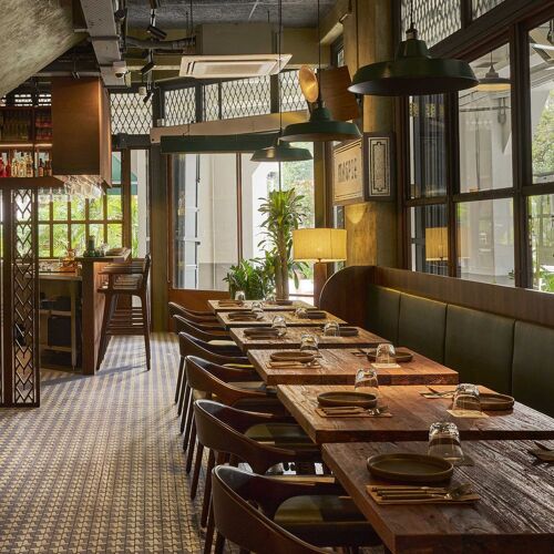 室外用餐区被绿植环绕,室内以马赛克和复古摆设妆点,感觉悠闲时尚。菜品的灵感源自主厨的生活经历,菜单跨越印度、中国、斐济、南美以至欧洲等地,打破地域界限,并根据时令食材,每隔数周更新菜式。招牌主食土窑炉烤馕现点现做,表面涂上特制黄油酱汁,伴随清爽的柑橘风味和胡椒香气。主菜适合多人共享。