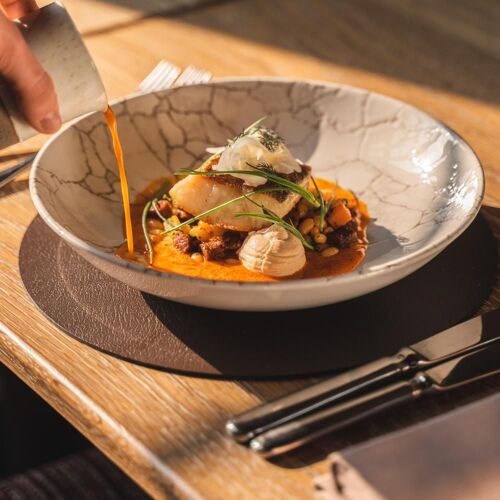 There's a lot of beautiful restaurants around, but Clockspire might be one of the most strikingly attractive spots you'll find. Housed within a converted 19th-century school, its high ceiling and exposed rafters provide plenty of ecclesiastical 'wow factor', while the lavishness of the refurbishment is mightily impressive. As you may expect, the dishes are impeccably presented and the polished cooking makes good use of its British ingredients. The slick service comes with a personal touch that feels as though the team really care about your experience.