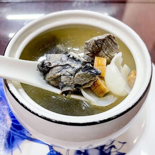 由始于清代、本地著名的中药行胡庆余堂创办,菜单秉承其药膳传统,每道菜都根据食物本身性味,搭配合适的中药,烹调出“药食同源”的菜式。譬如招牌菜黄芪河虾,以黄芪带有的甘甜为河虾增添鲜味。菜单上也有不少药膳点心、自制药酒和养生饮品,其中茯苓蒸饺和人参黑米糕均只此一家,推荐品尝。