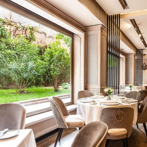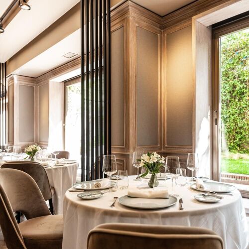 A classically elegant restaurant with large picture windows offering views of the beautifully kept courtyard-cum-garden, where the focus is on traditional cuisine enhanced by the occasional Basque and Navarrese influences. The menu, which also includes a section dedicated to rice and pasta, always features game dishes in season, as well as daily specials such as the delicious cep mushrooms with foie gras and egg yolk that we enjoyed during our most recent visit here.