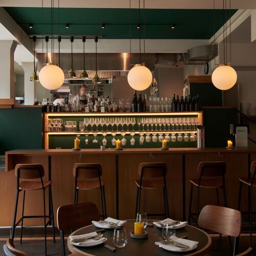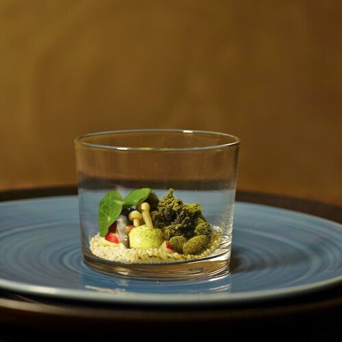 Maurizio Oster is (the name of) the chef-owner of this modern, sleek, almost minimalist-style little restaurant. His North German roots are also reflected in his cuisine – the guiding philosophy is clear: the produce always takes centre stage. Excellent ingredients, sourced primarily from small producers and organic farms in the immediate vicinity go into seasonal, plant-forward dishes that are sustainably prepared. There is a set menu including fish and meat, as well as a completely vegetarian version. Both can be extended with the delightful extra courses "Die Forelle zelebriert” (trout) or "Der Kohl zelebriert” (cabbage) respectively. Dishes such as "onion, lovage, quinoa" are meticulously crafted and artfully presented, yet pared down and brimming with bold flavour – a unique culinary identity is evident. The kitchen team also has a real penchant for fermenting, preserving and making vinegar. Service is attentive yet relaxed. Astute wine recommendations. The set menu can also be paired with house-made non-alcoholic drinks.