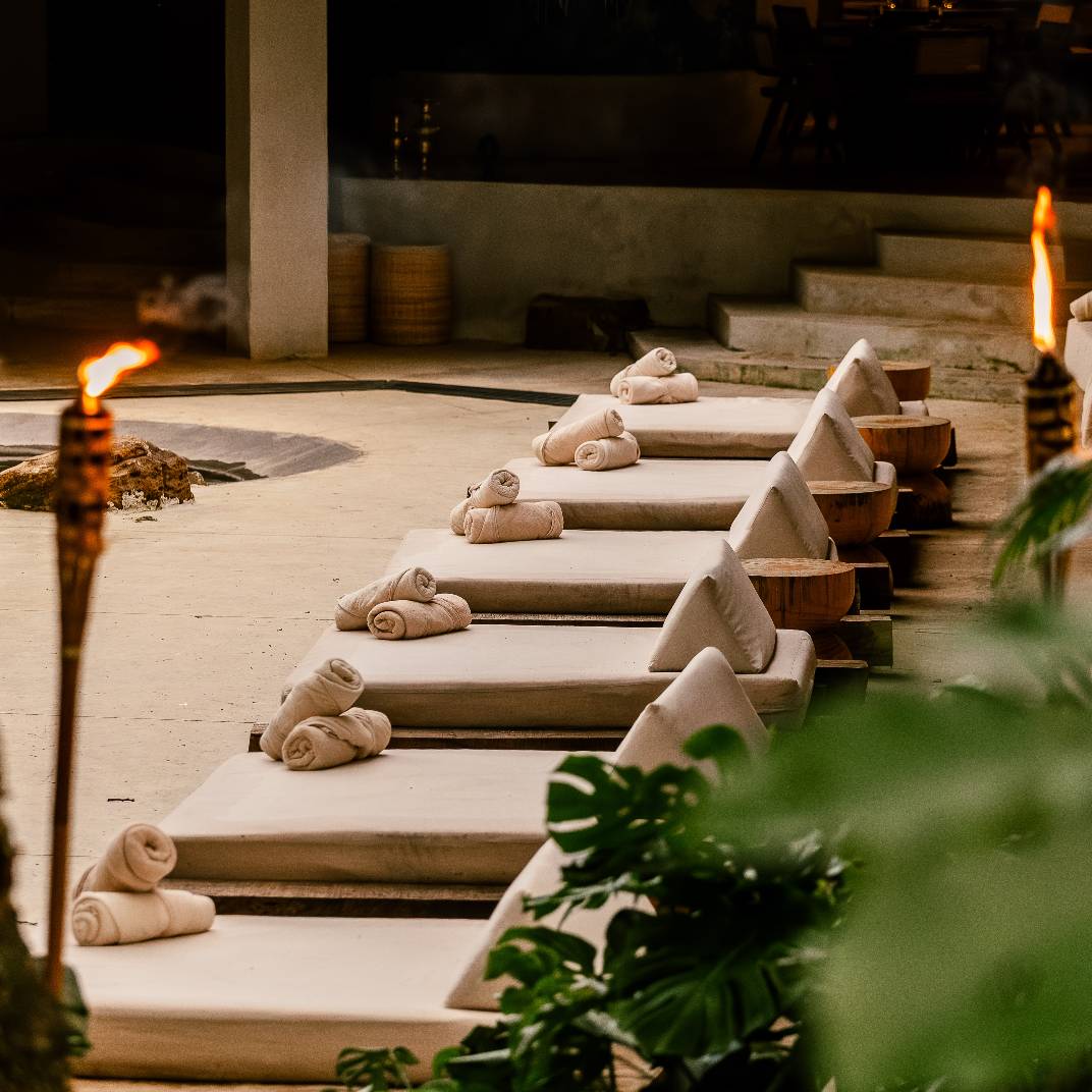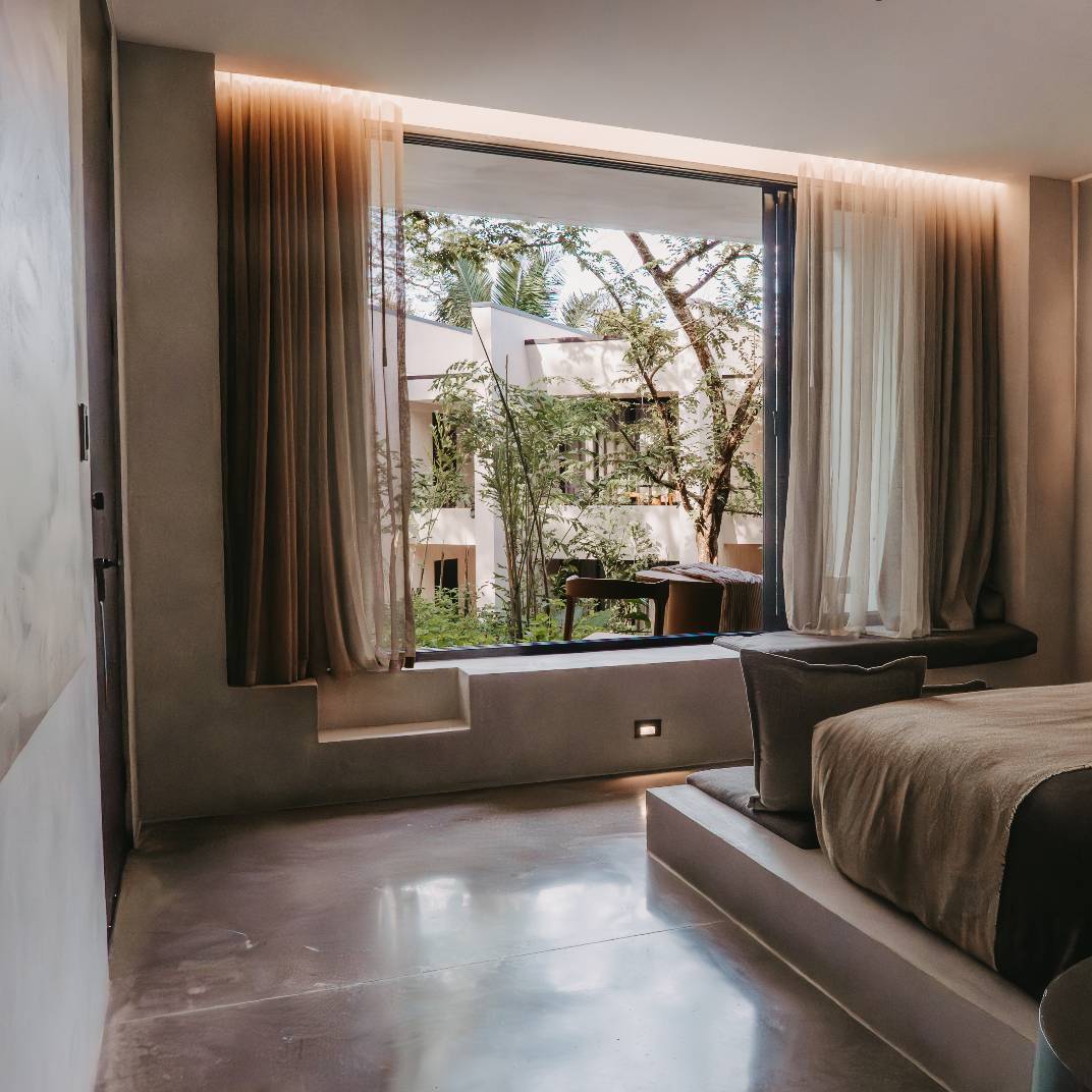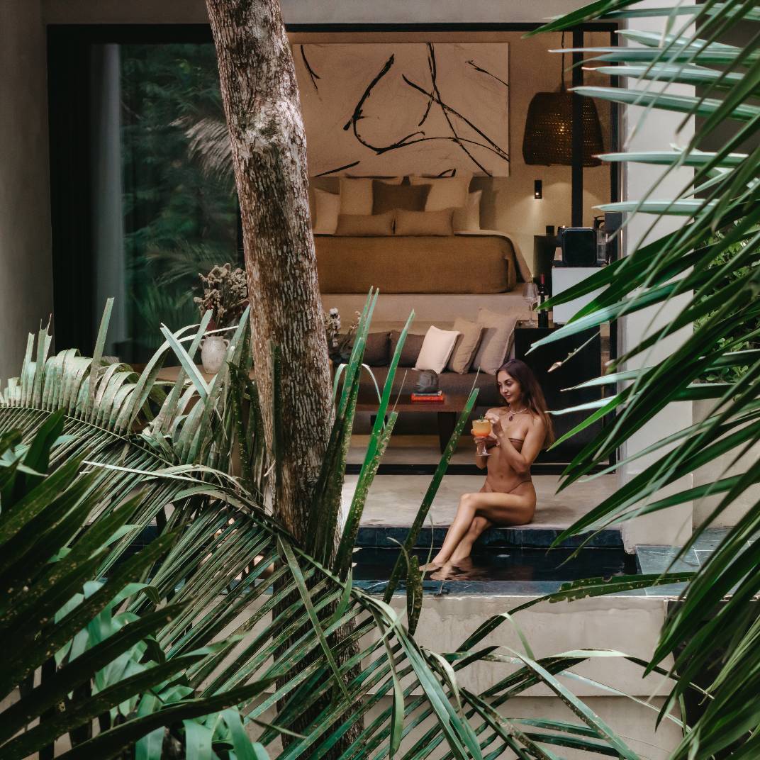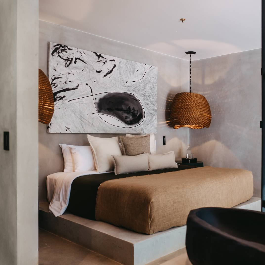 There’s a slow burn to Esh Hotel, a retreat where fire is both inspiration and ritual. Its name, drawn from the Hebrew word for flame, flickers through the design, with lava-stone soaking tubs, blackened wood furniture, and an ever-burning fireplace where guests cast their intentions. The rainforest setting is immersive, from canopy-brushing balconies to jungle baths, while the three-tiered pool invites deep unwinding. A quick shuttle ride takes you to Guiones Beach, but with charcoal margaritas and mezcal-laced sunsets waiting, you may not want to leave.