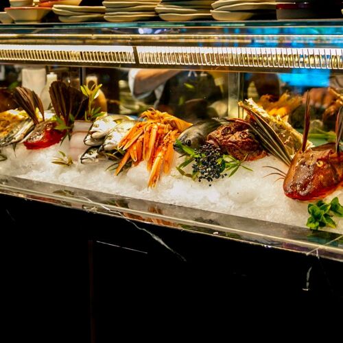 As you make your way through this chic restaurant, you will certainly be drawn to the modern works of art and the panoramic view of the Bosporus. But what really catches the eye at AZUR is the seafood on display. The quality is second to none! All that excellent produce is showcased in dishes that fluidly blend Turkish and Mediterranean culinary traditions. Think Atlantic bluefin tuna tartare with creamy stracciatella, super-fresh fish on the plancha, paella or pasta. Meat fans are also well catered for. The servers will be happy to give you a few pointers to help you get the most out of this culinary adventure.