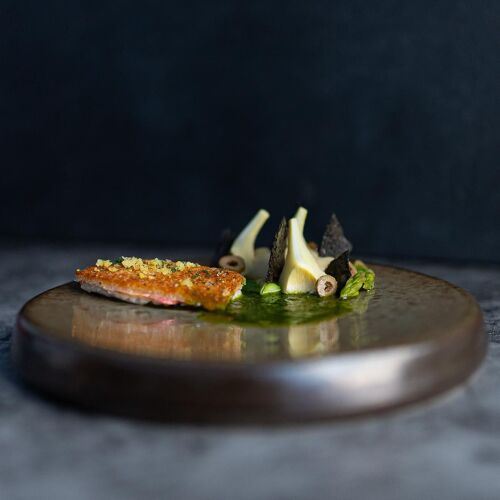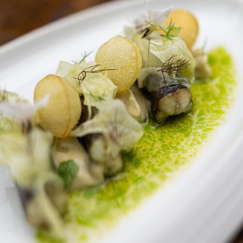 De Lindenhof offers a unique experience that starts with the location: a splendid farmhouse with a thatched roof that exudes character and elegance. The English garden is magnificent – the scene could not be more idyllic! Out back is the chef's little sailing boat, in which he likes to cruise the canals (sometimes taking guests with him!). There are also luxurious guestrooms for a relaxing stay. But the main draws are the enthusiastic service provided by hostess Marjan and the ingredient-led cuisine of Martin Kruithof, a traditional chef who has moved with the times. When he incorporates international influences and creative ideas, he never goes overboard and tends to stick to classic flavours. The quality of the produce is impressively showcased, and his dishes are presented in such a way that you can see exactly what you're eating. For example, he cooks top-quality langoustine to a turn and elevates it with a sauce with a hint of caper, then, for a burst of freshness, he adds fragrant vegetables such as broad beans from his own garden and camomile flowers. This is a wonderfully simple take on refined cuisine! What a pleasure it is to be spoiled by Martin Kruithof.
