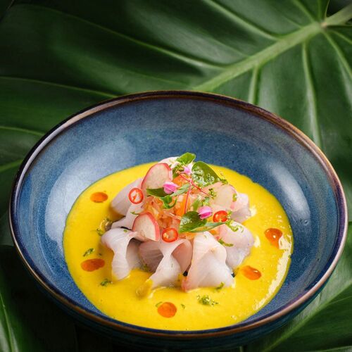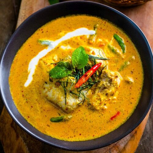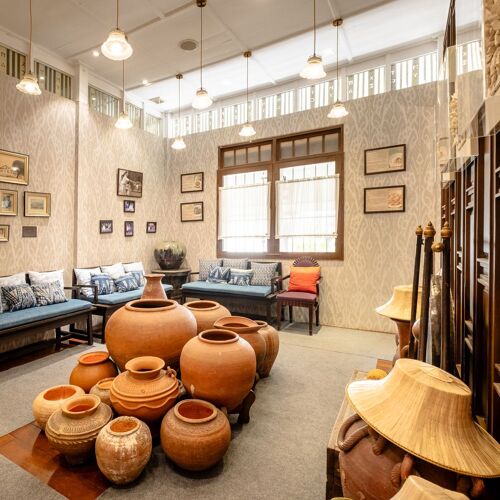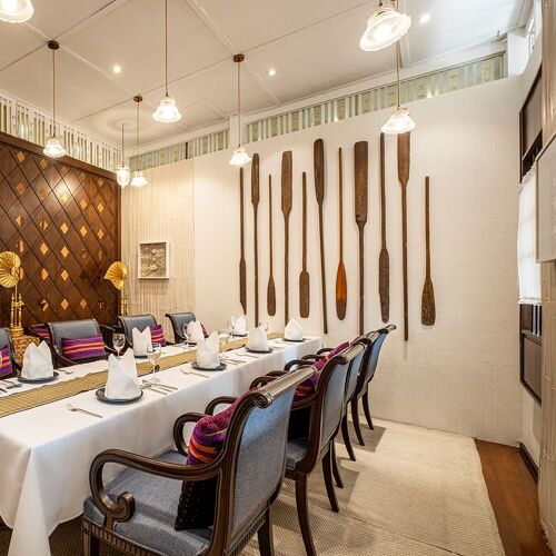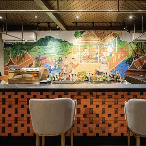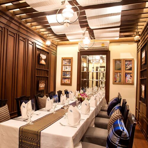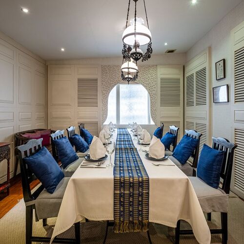 อิ่มอร่อยกับมื้ออาหารไทยที่รังสรรค์อย่างประณีต ในบรรยากาศย้อนยุคของบ้านทรงโคโลเนียลใจกลางเมืองหลวง เมนูของร้านออกแบบให้นำเสนอความหลากหลายของครัวไทยจากทั่วทุกภูมิภาค จานเด็ดที่แนะนำว่าไม่ควรพลาดคือปลากะพงสามรส ปลาสดตัวโตเลาะก้างออกจนหมดเพื่อให้กินง่าย และทอดจนสุกกรอบแต่เนื้อในยังนุ่มหวาน ราดซอสรสเปรี้ยวหวานและเผ็ดเล็กน้อย อย่าลืมเผื่อท้องไว้สำหรับของหวานล้างปากอย่างเซ็ตขนมไทยรวมรสที่ทางร้านทำเอง เสิร์ฟพร้อมไอศกรีมโฮมเมด