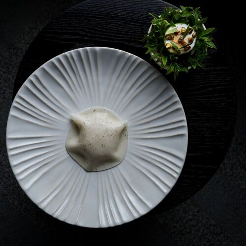In this elegant space, set within a serene glasshouse on the seventh floor of The Ritz-Carlton, lush greenery blends with a striking wooden ceiling carved with nature-inspired motifs. Chef David Toutain presents a seasonal tasting menu that is creative, delicate and distinctly plant-forward, with clever touches that balance land and sea. The zero-proof drink pairing is a smart choice, enhancing flavours without overwhelming the delicate nuances of the food.