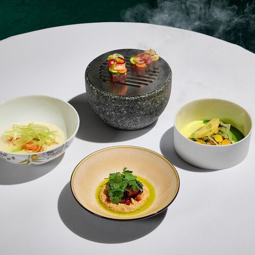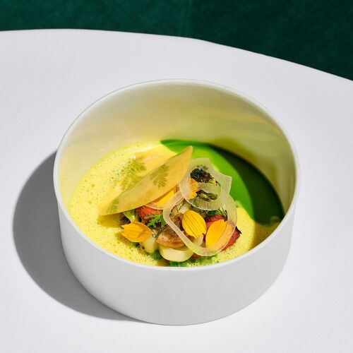 Igniv means “nest” in Romansh, the mother tongue of chef-founder Andreas Caminada, and there is certainly a playful nest-like quality to this elegant restaurant in The St. Regis Bangkok hotel. The chef has worked alongside the celebrated founder for many years, all collaborating to craft detailed dishes that are executed with a Swiss clock-making precision. Their excellent tasting menu inspires sharing, with multiple dishes served simultaneously.