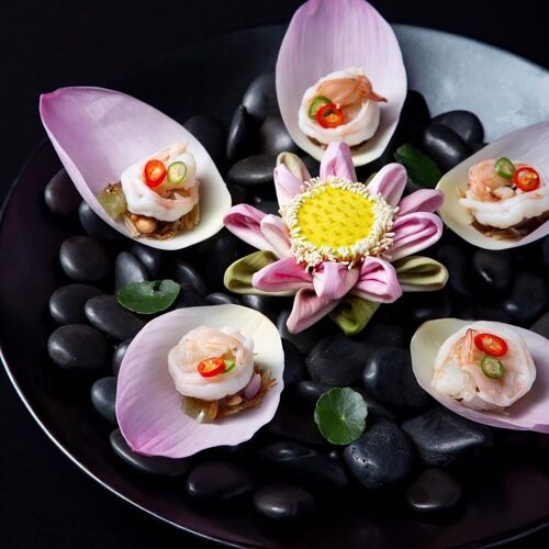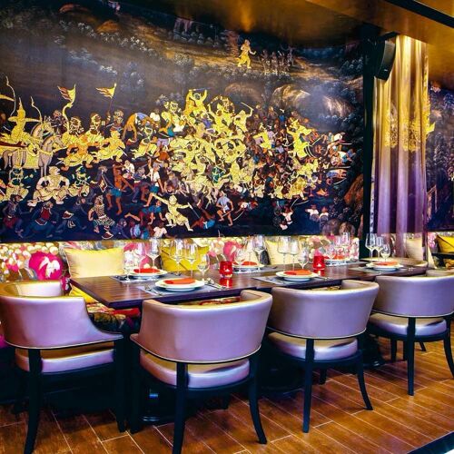 A majestic twist on its sister restaurant in San Francisco, Royal Osha aims to engage the senses with enticing flavours, aromas, textures, sights and sounds. The setting is a sleek, modern dining room decorated with Thai art. Start with a cocktail inspired by Ramakien characters, before enjoying dishes like the excellent tom yum kung mae nam (spicy, sour soup with river prawns infused with Thai herbs) and the (seasonal) chilled rice served with accompaniments.