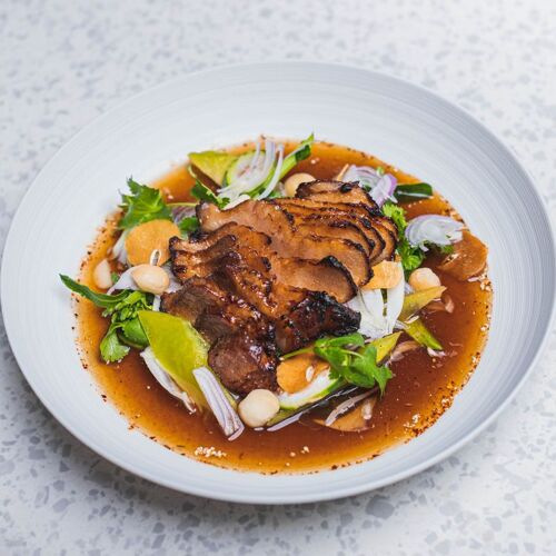 The food here is as intricate as the spiral silk cocoon sculpture that fills the airy dining room. Drawing inspiration from royal Thai cuisine, the kitchen also employs century-old techniques and plenty of local ingredients. The roasted duck curry with lychee, fennel seed and freshly squeezed coconut milk and the char-grilled pork, fennel seed, and smoked tomato relish are recommended and can be found on the tasting menus and à la carte. Excellent service further enhances the experience.