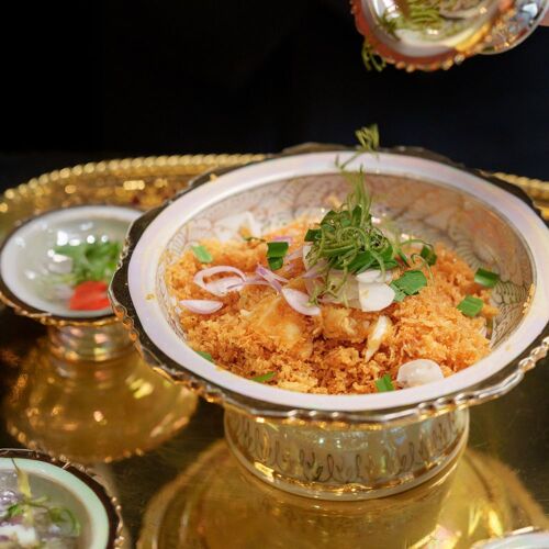 In an elegant, softly lit setting with Thai art hung on the walls, Saneh Jaan serves refined Thai classics. Offering an intimate fine dining experience that remains rooted in heritage, it is ideal for business or special occasions. Lovingly made recipes draw on Thai royal and regional archives: highlights include crispy rice vermicelli with river prawn, and catfish stir-fried with chilli, salted egg yolk and kaffir lime – both perfect with jasmine rice.