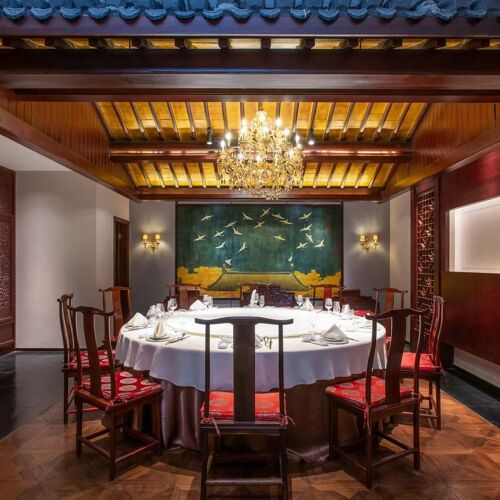 This period mansion, complete with a stone garden and carved wooden windows, provides the perfect foil to the restaurant’s polished cuisine. The menu celebrates the all-time favourites of Huaiyang cooking, such as braised pork belly in brown sauce with arrowroot, and sautéed swamp eel in pepper sauce. Hand-peeled lake shrimps with fox nuts boast velvety texture and are best enjoyed with aged vinegar. The seasonal menu is also worth checking out.