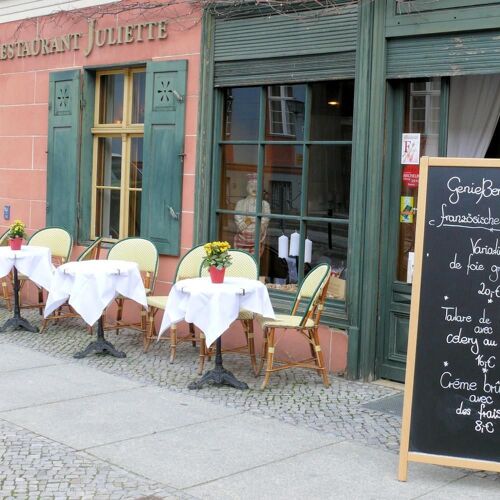 Are you looking for a slice of the French way of life in the middle of Potsdam? In the Holländisches Viertel (Dutch Quarter), you will find this beautifully designed restaurant, which is housed in a charming 17C half-timbered house. The dining space comprises three different levels, where you can enjoy ambitious classic cuisine accompanied by just the right wine, as a discreet soundtrack plays in the background. In addition to the menu, you can also choose a few dishes à la carte. If the weather is nice, would you like an aperitif at one of the small tables on the pavement before your meal?